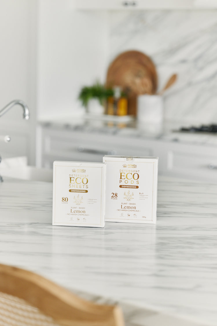 Our Dishwashing sheets and pods cut through grease and grime with plant based power, safe for your family and our waterways, and free from harmful additives. They lather richly, rinse clean, and leave no residue behind.