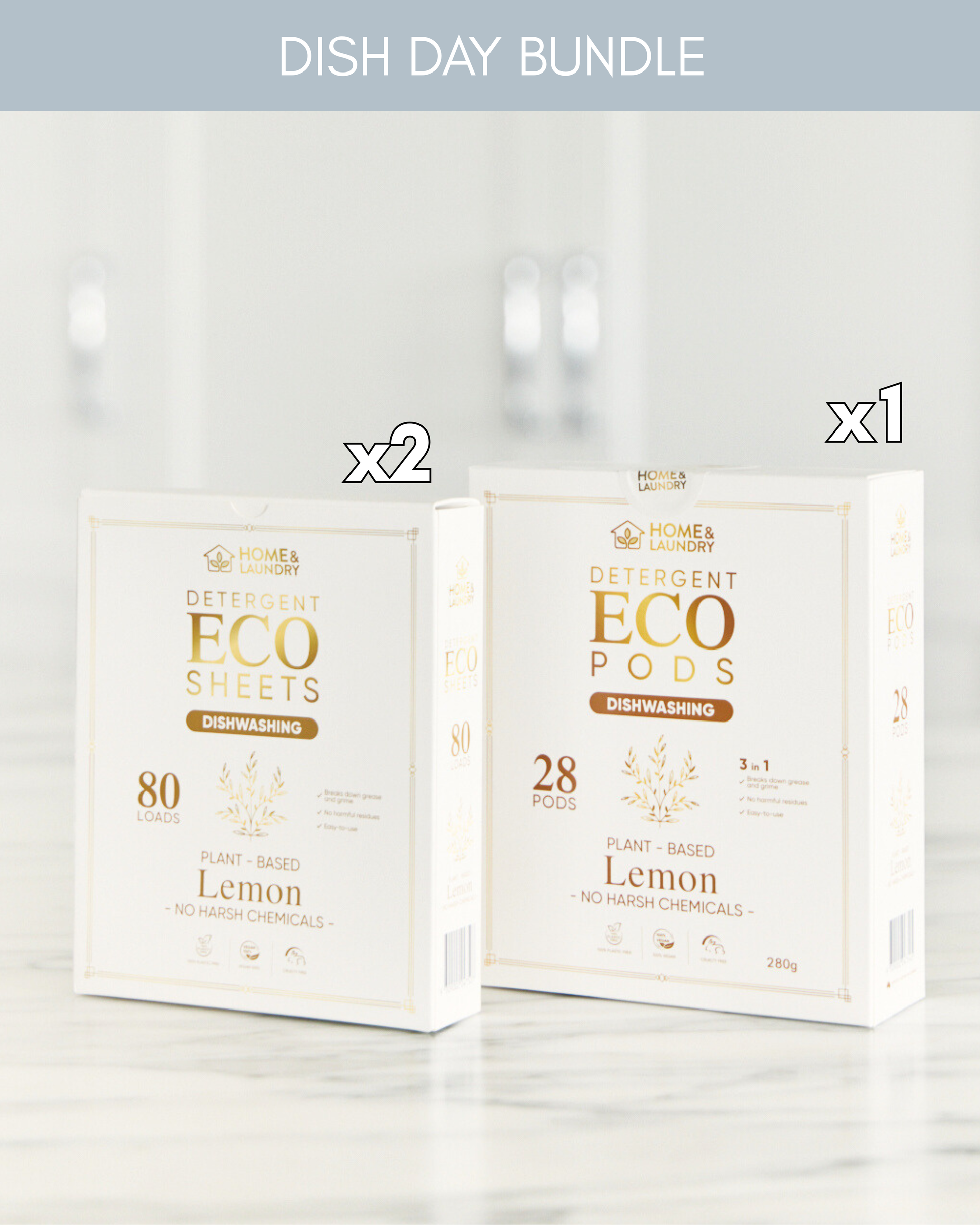 Upgrade your home with the perfect eco-friendly cleaning trio. The Laundry Lovers Bundle includes 2× Dishwashing Sheets and 1× Dishwashing Pods, giving you a powerful, plant-based clean without harsh chemicals.